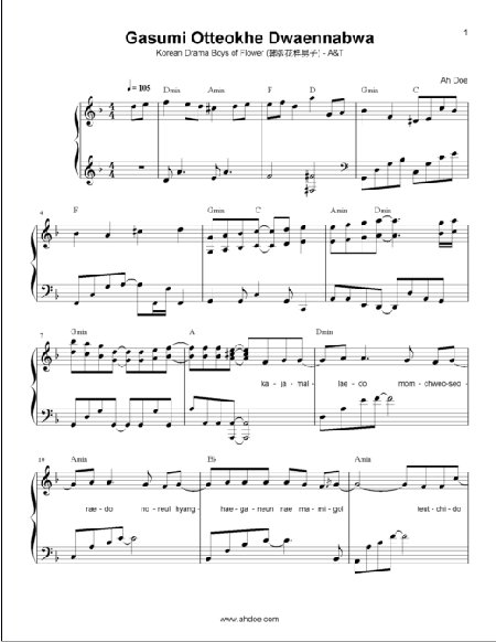 Gasumi Otteokhe Dwaennabwa (Korean Drama Boys of Flower) by AT Piano Sheet Preview