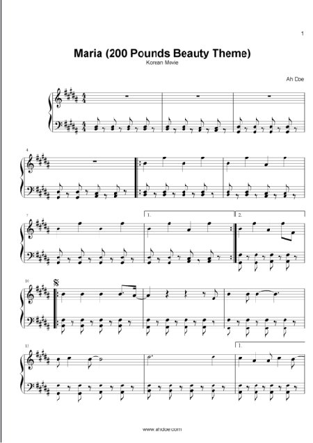 Now you’ll have two piano sheets of Maria from 200 Pounds Beauty the Korean Movie in different keys: One in C Major and another one in B Major, which is the original key.