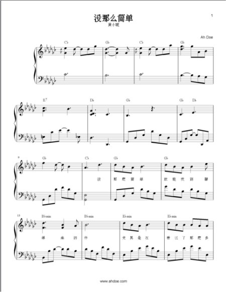Download link for Huang Xiao Hu’s Not so easy (没那么简å•) complete piano sheet.